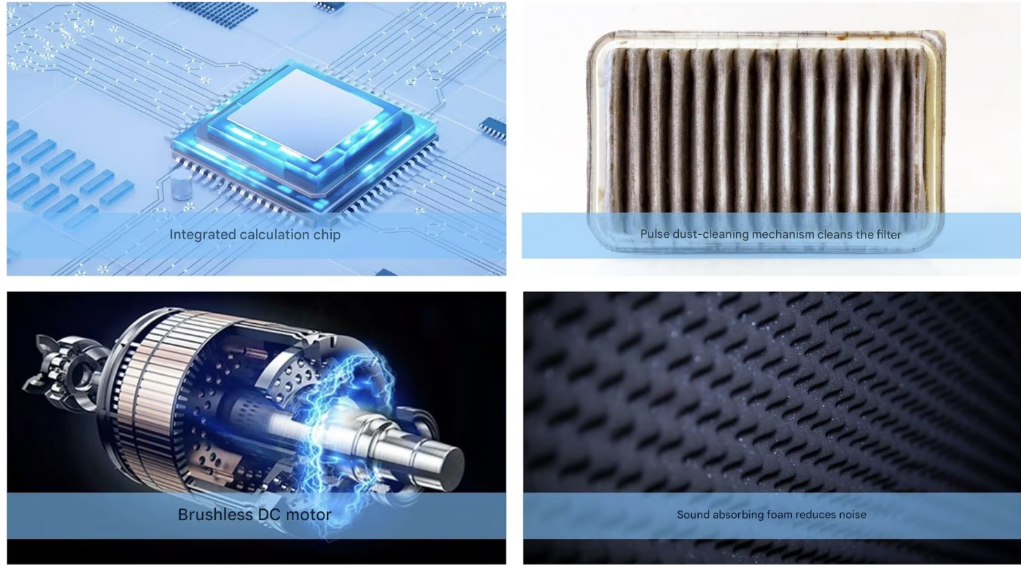 • Brushless DC Motor: Ensures high power, quiet operation, and a long service life.