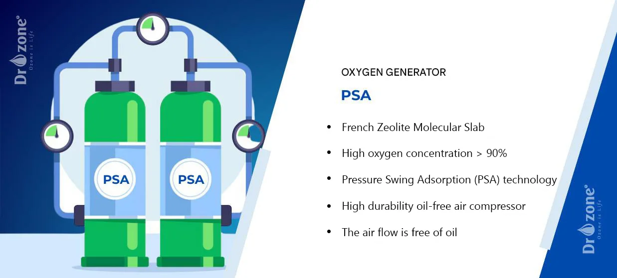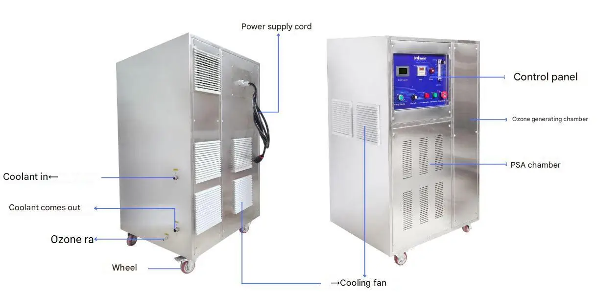 High-grade Zeolite molecular sieves from France, combined with PSA (Pressure Swing Adsorption) technology, deliver oxygen with purity above 90%, optimizing ozone generation performance.