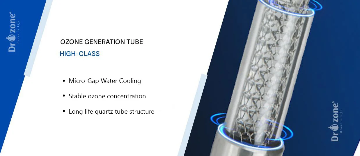 The discharge tube in the D150S is a technological highlight, combining advanced micro-gap water-cooling technology with a high-quality quartz tube structure. This ensures stable ozone generation, improved energy efficiency, and excellent resistance to ozone corrosion, maintaining consistent ozone output over time. This combination significantly enhances the durability and performance of the Dr.Ozone D150S.