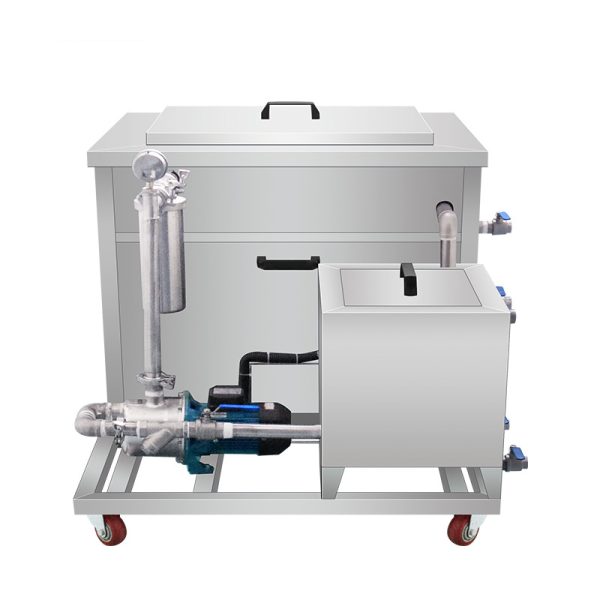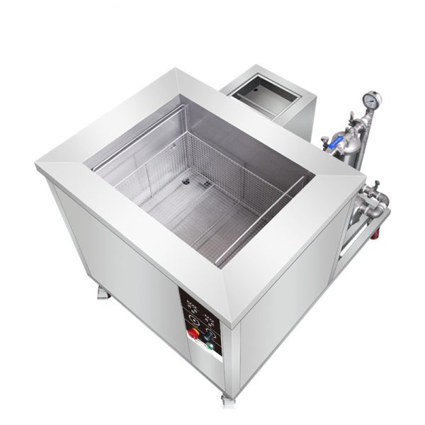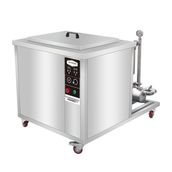The ultrasonic transducer mounted at the bottom of the tank generates high frequency ultrasonic waves when energized. These waves propagate through the solution, creating a continuously changing pressure zone. In the low pressure zone, microscopic vacuum bubbles are formed and when they move to the high pressure zone, they collapse, creating a strong impact force on the surface of the component.